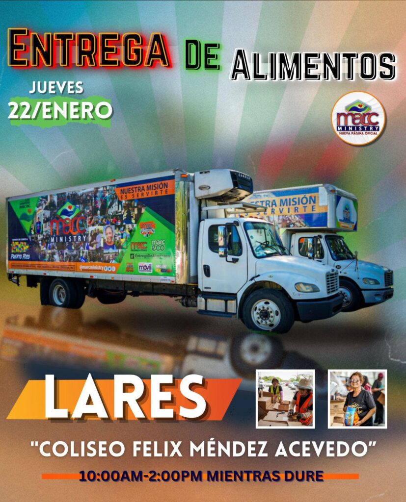 Este próximo jueves 22 de enero de 2026 Ministerio MARC estará realizando la entrega de alimentos en el Coliseo Félix Méndez Acevedo.