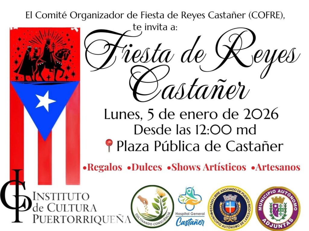 El alcalde Fabián “Faby” Arroyo Rodríguez y el Comité Organizador de la Fiesta de Reyes Castañer (COFRE) invitan a toda la comunidad a disfrutar de la tradicional Fiesta de Reyes Castañer.