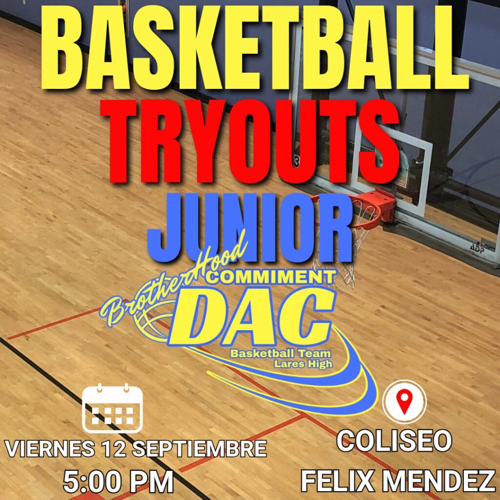 La Administración Municipal de Lares y su alcalde Hon. Fabián Arroyo Rodríguez les invita al Basketball Tryouts Junior, Brotherhood Commiment DAC Lares High.