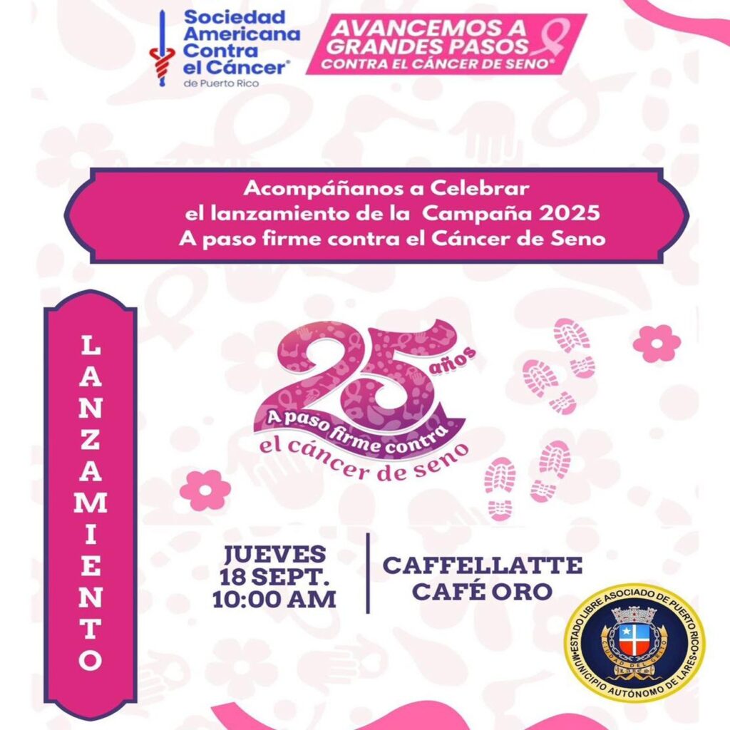 Avancemos a Grandes Pasos contra el Cáncer de Seno El alcalde Fabián “Faby” Arroyo Rodríguez , el Municipio Autónomo de Lares y la Sociedad Americana Contra el Cáncer de Puerto Rico te invitan a ser parte del lanzamiento de la Campaña 2025: “A paso firme contra el Cáncer de Seno” Este año celebramos 25 años […]