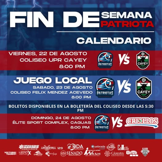 Regresan Los Patriotas de Lares a la cancha! El alcalde Fabián “Faby” Arroyo Rodríguez te invita a que hoy viernes 12 de septiembre de 2025 te des la vuelta por el Coliseo Félix Méndez Acevedo para que seas parte del comienzo de las prácticas de Los Patriotas de Lares. Ven a apoyar a tu equipo […]