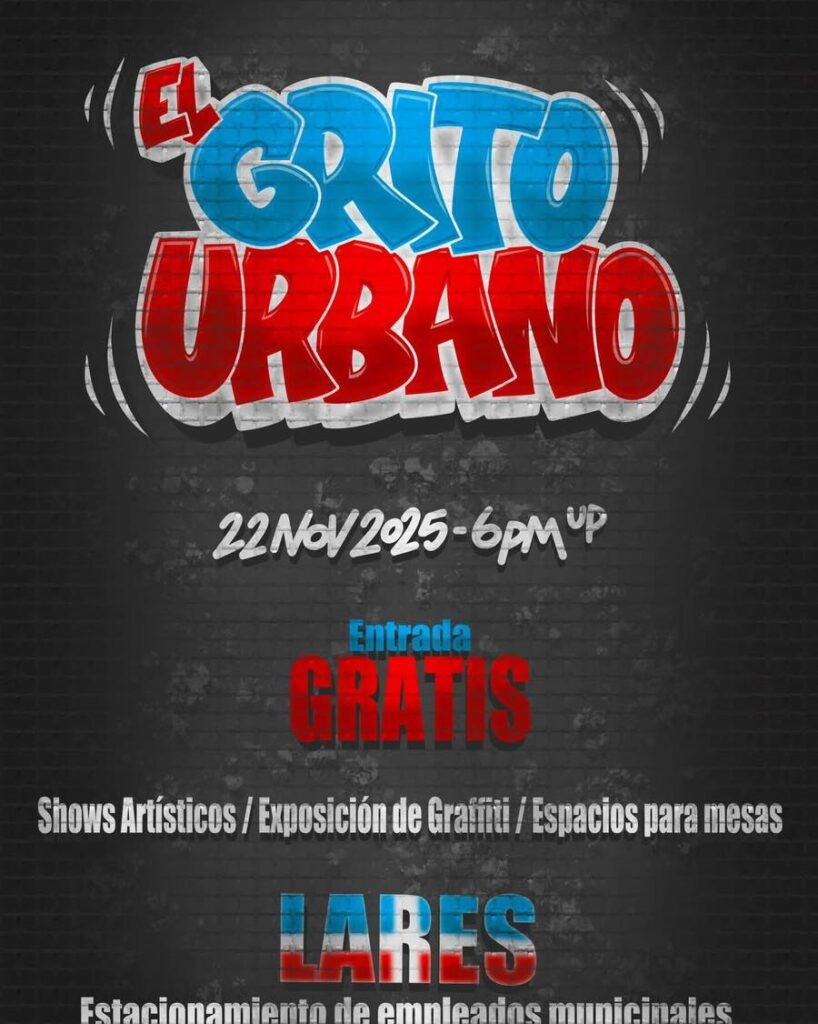 El alcalde Fabián “Faby” Arroyo Rodríguez te invita a que este sábado 22 de noviembre de 2025 desde las 6pm seas parte de El Grito Urbano que se llevará a cabo en el estacionamiento de empleados municipales (antigua plaza del mercado) en Lares. Música en vivoGraffiterosSección de Djs ¡Arte, música, graffiti y cultura en un […]