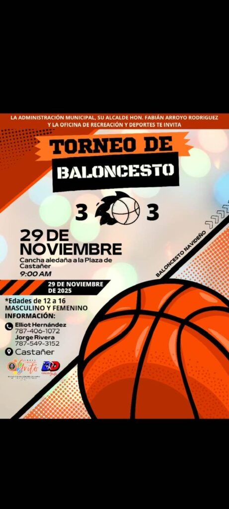 ¡Lares se activa en la cancha! El alcalde Fabián “Faby” Arroyo Rodríguez y la Oficina de Recreación y Deportes te invitan al Torneo de Baloncesto 3 pa’ 3 Navideño este 29 de noviembre. Cancha aledaña a la Plaza de Castañer 9:00 AM Ven a disfrutar de un día lleno de energía, deporte y sana competencia […]